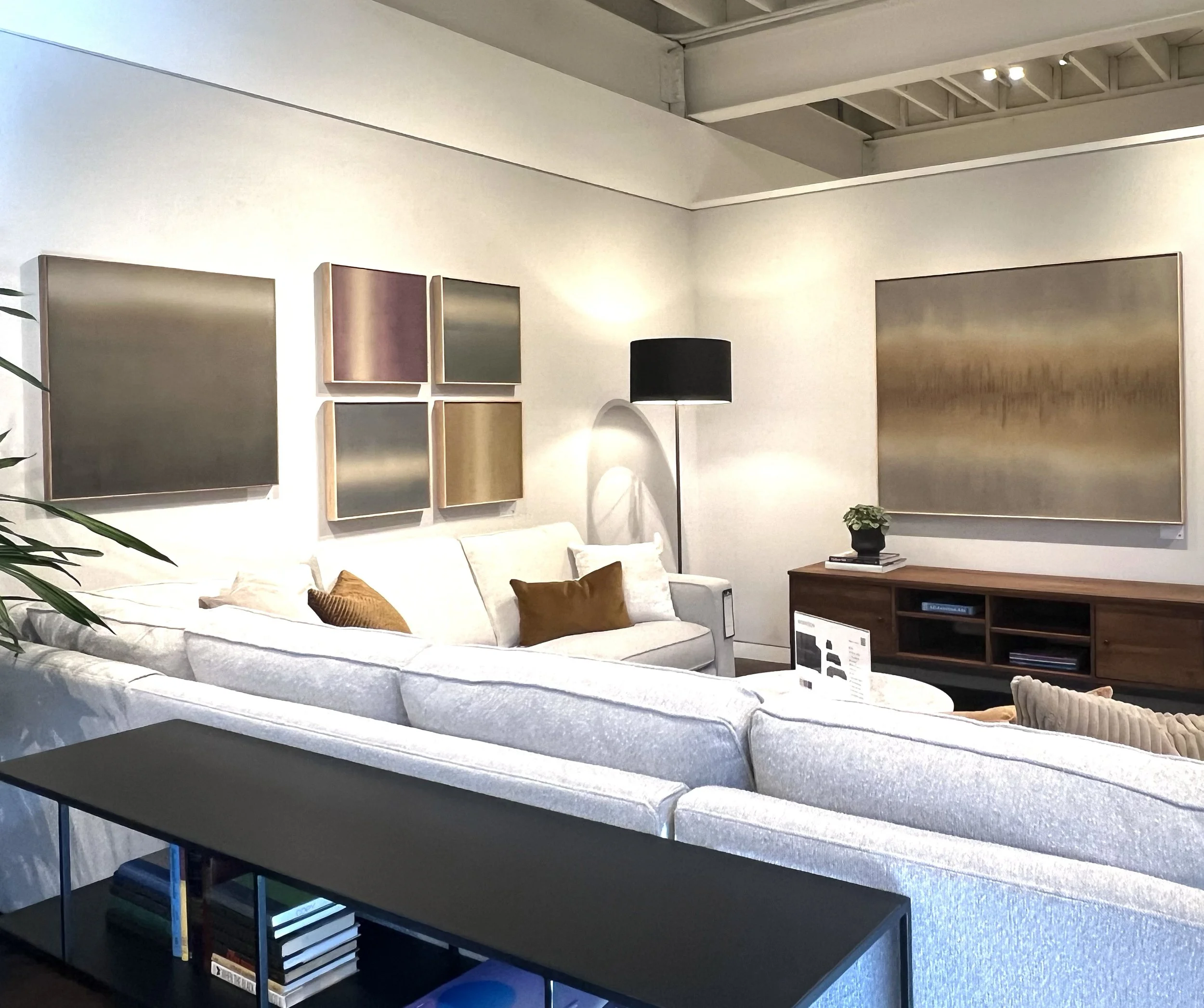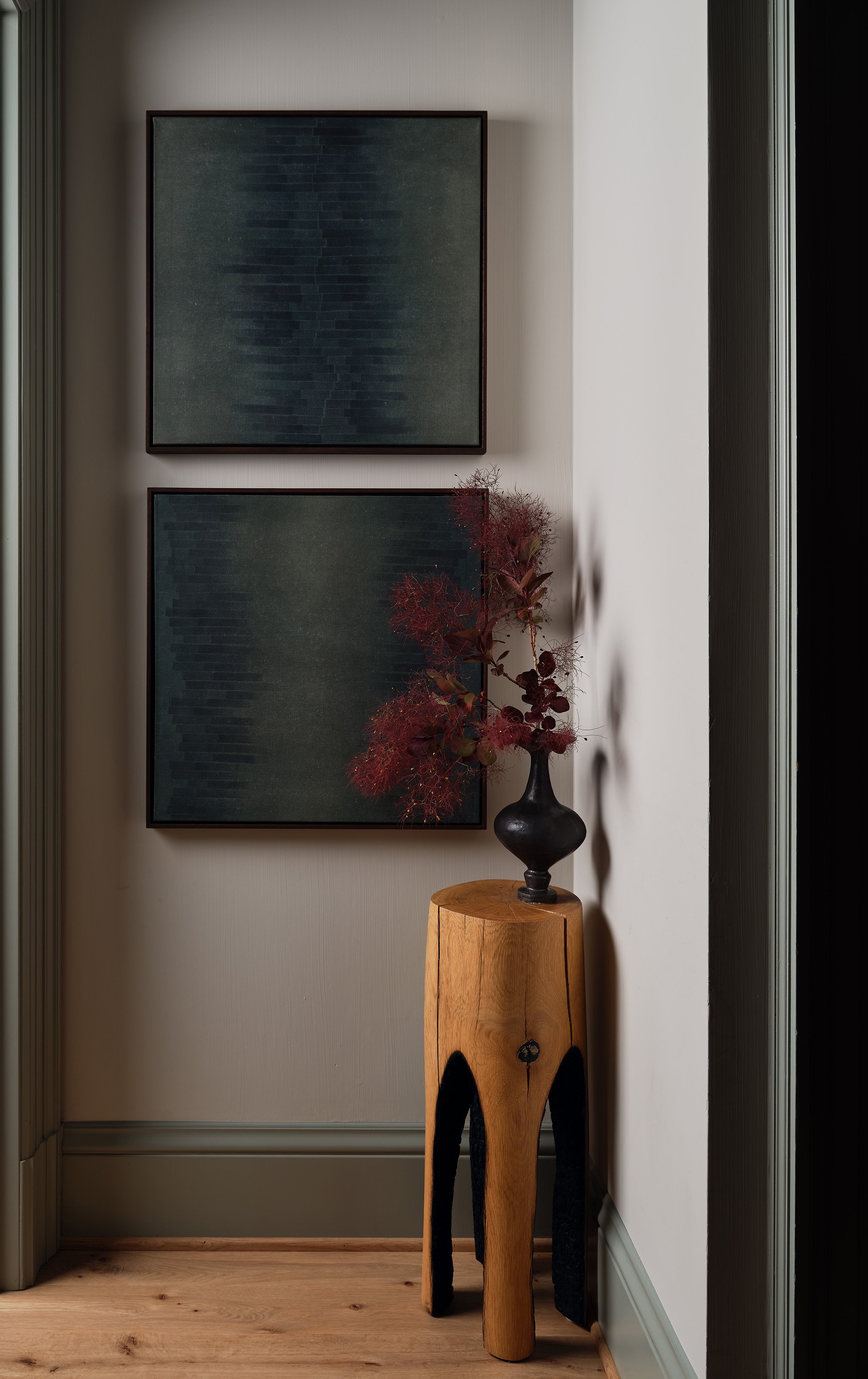 Resolute, 2023 - plaster and pastels on wood panel featured in AD Middle East.