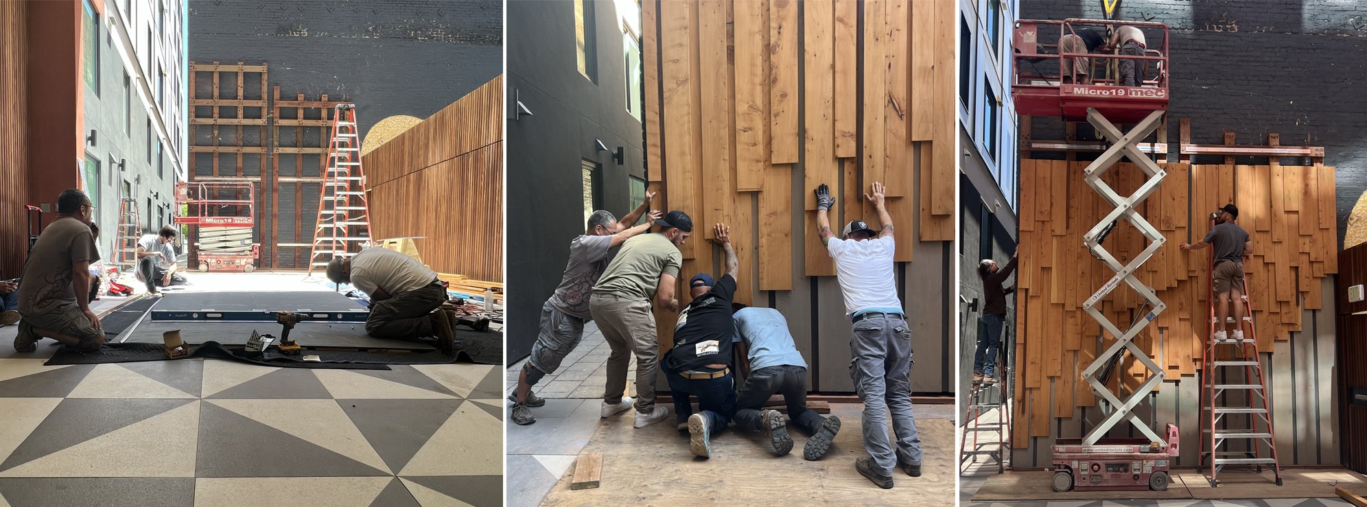 “Unraveling” an all wood public art piece created specifically for the courtyard of a new real estate development in downtown Oakland, CA. This would not have been possible without ABG Art Group, and the incredibly hardworking teams they assembled to make this piece a reality. Working with a whole crew of fabricators and installers over many months stretched me in a good way. The piece, titled “Unraveling” soars 20 feet high and is constructed out of cypress wood. It is composed of layered panels of wood that cascade with an intuitive rhythm. As sunlight shifts across the surface, changing contrasts reveal the evolving nature of perception; the experience evolves, offering the viewer a sense of both permanence and impermanence. Loved working at this scale. My head is now full of ideas for large scale work. Now I just need the spaces!